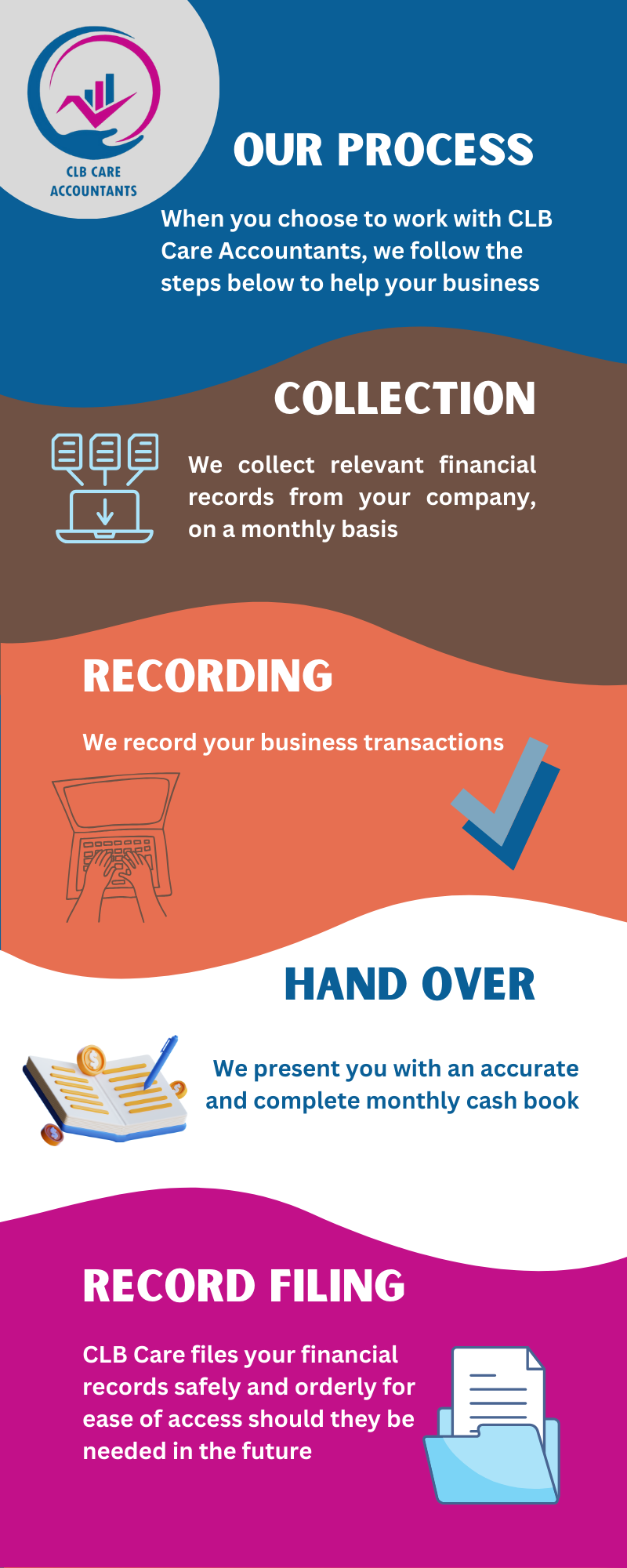 With more than 8 years in business, CLB Care Accountants is fully committed to helping your business succeed by performing the critical accounting functions